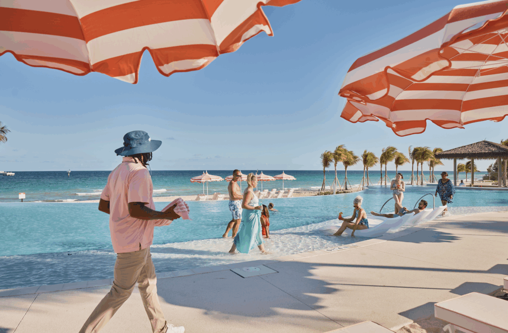 If your idea of paradise is less splash zone and more spa energy, you’ll want to check out the Pearl Cove Beach Club. This exclusive, adults-only area (18+) offers a more serene, upscale vibe with private beach access, an infinity pool, swim-up bar, premium loungers, and full-service dining.